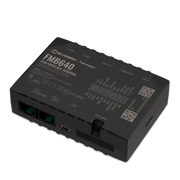 Teltonika FMB640 - это терминал GNSS, GSM и Bluetooth для ПРОФЕССИОНАЛЬНЫХ приложений. FMB640 предназначен для комплексных решений, когда одно устройство может выполнять несколько задач. Функции FMB640, такие как данные FMS CAN (J1939), данные CAN топлива (J1708), оперативные данные тахографа (K-line), дистанционная загрузка файлов тахографа, поддержка различных устройств RS232 или RS485 сторонних производителей и Dual-SIM, позволят максимально повысить эффективность вашего автопарка. Терминал подходит для таких применений, как международная логистика, рефрижераторные перевозки, сельское хозяйство, строительство и добыча полезных ископаемых, службы безопасности и аварийные службы и даже больше. Устройство поддерживает датчики температуры / влажности, громкую связь, обновление прошивки и конфигурации через Bluetooth.